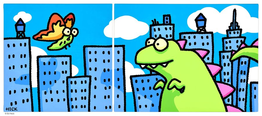 Ed Heck, 1963 in Brooklyn geboren, begann bereits als Junge mit dem Zeichnen. Nach dem Kunststudium war er ab 1987 zunächst als Illustrator beim American Museum of Natural Art tätig und illustrierte mehrere Kinderbücher. Nebenher fertigte er abends Strichzeichnungen, die zu einer Leidenschaft für ihn wurden und die er 1999 erstmals in einer Ausstellung präsentierte. 2004 kündigte er dann seinen Job und widmete sich fortan nur noch seiner Kunst. Der mitreißende naive Charme und der frische, kühne Humor seiner Bilder begeistern die Menschen und haben ihn zu einem weltweit gefragten Künstler gemacht.